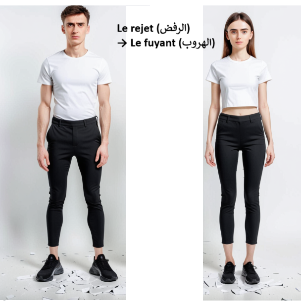Apparence physique : Silhouette longue et manquant de tonus, épaules basses, dos légèrement courbé. Les membres semblent affaissés, parfois flasques. Le regard est grand, empreint de tristesse